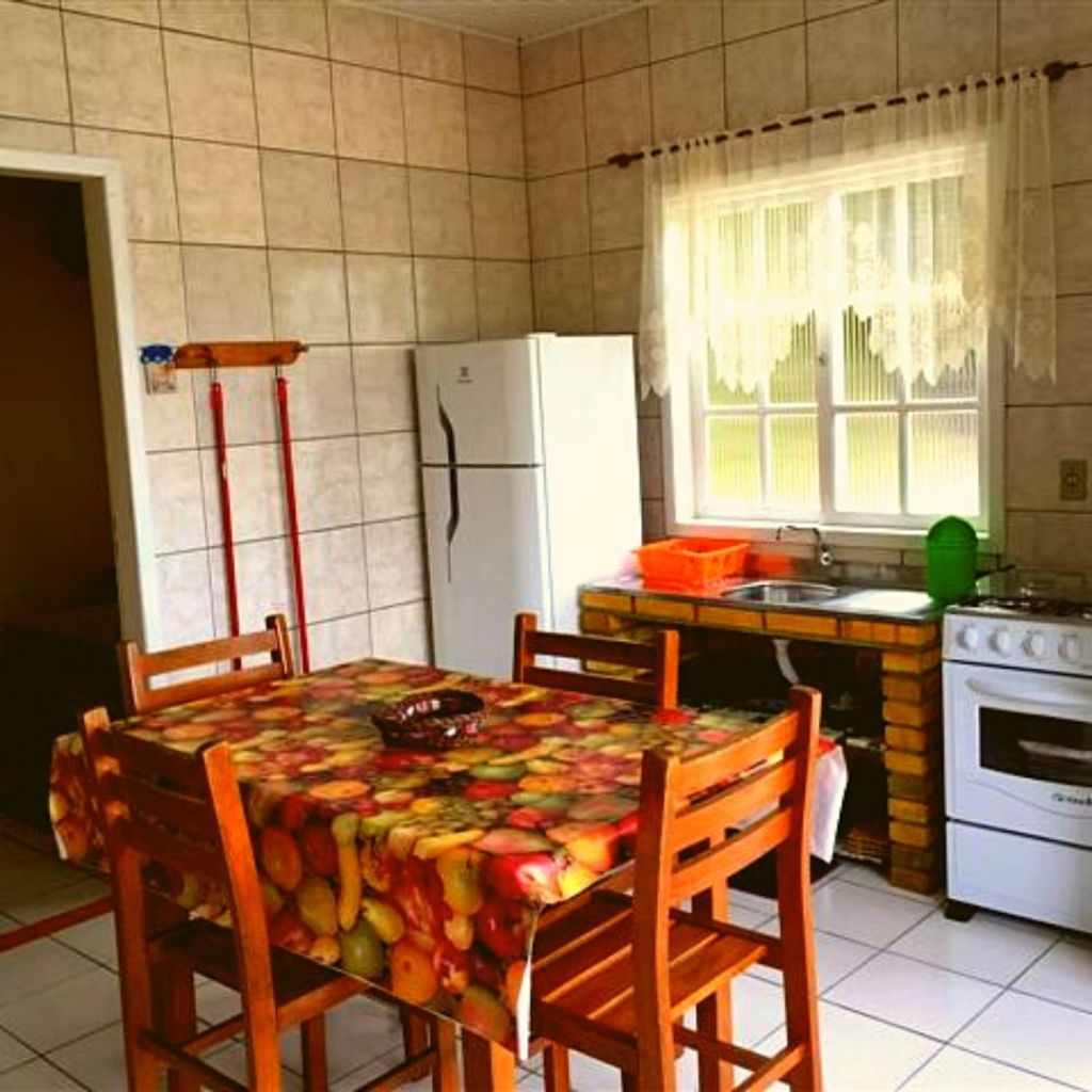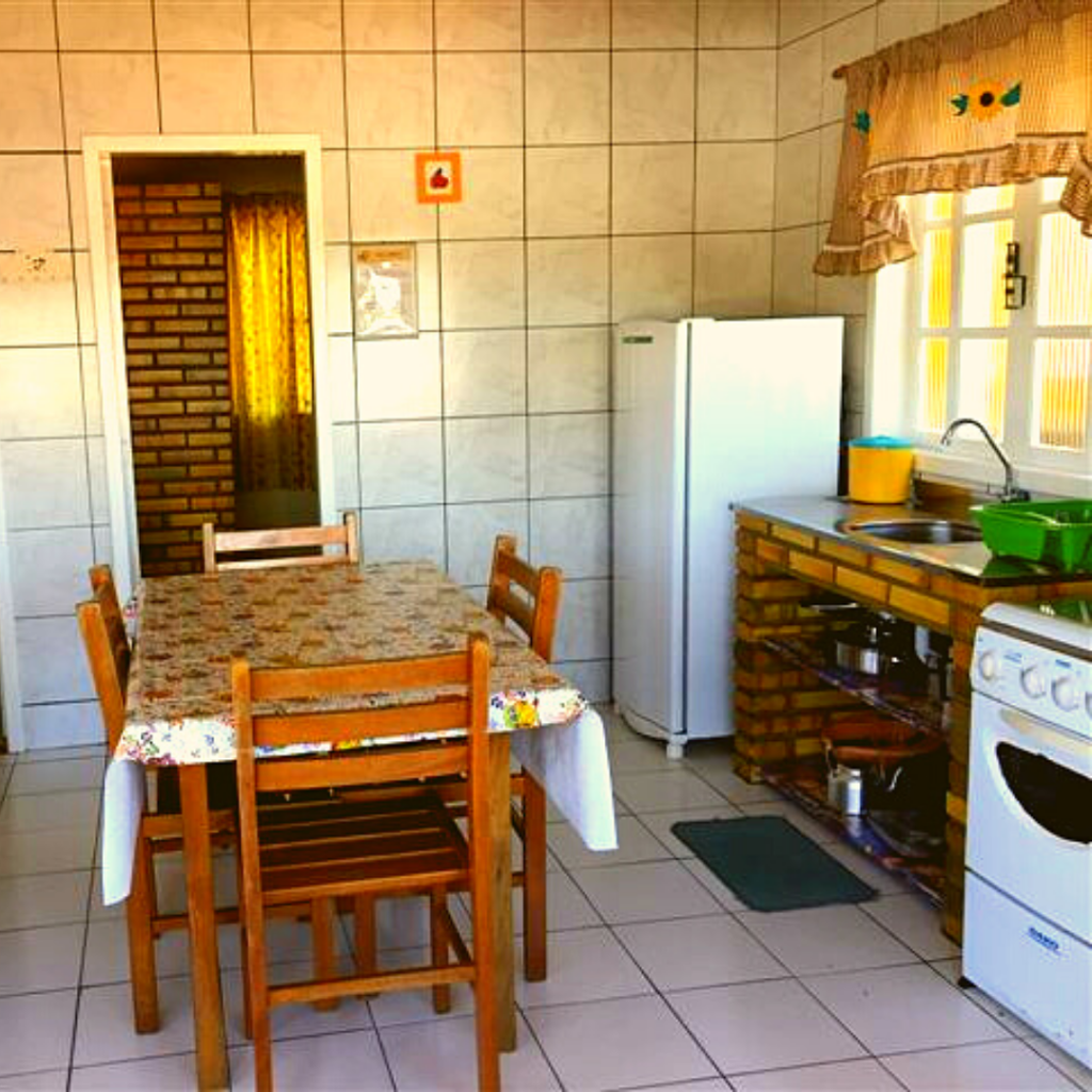 2 Camas de casal, geladeira, fogão 4 bocas com forno, utensílios completos de cozinha, banheiro privativo, churrasqueira, ventilador. Número máximo permitido 4, já incluindo crianças.