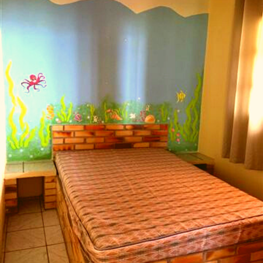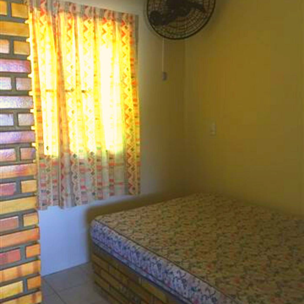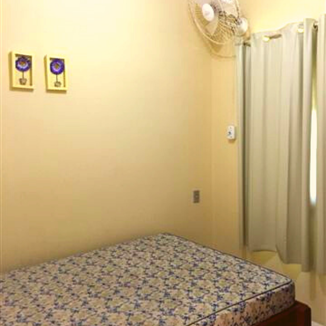 1 Camas de casal, geladeira, fogão 4 bocas com forno, utensílios completos de cozinha, banheiro privativo, churrasqueira e ventilador. Número máximo permitido 2, já incluindo crianças.
