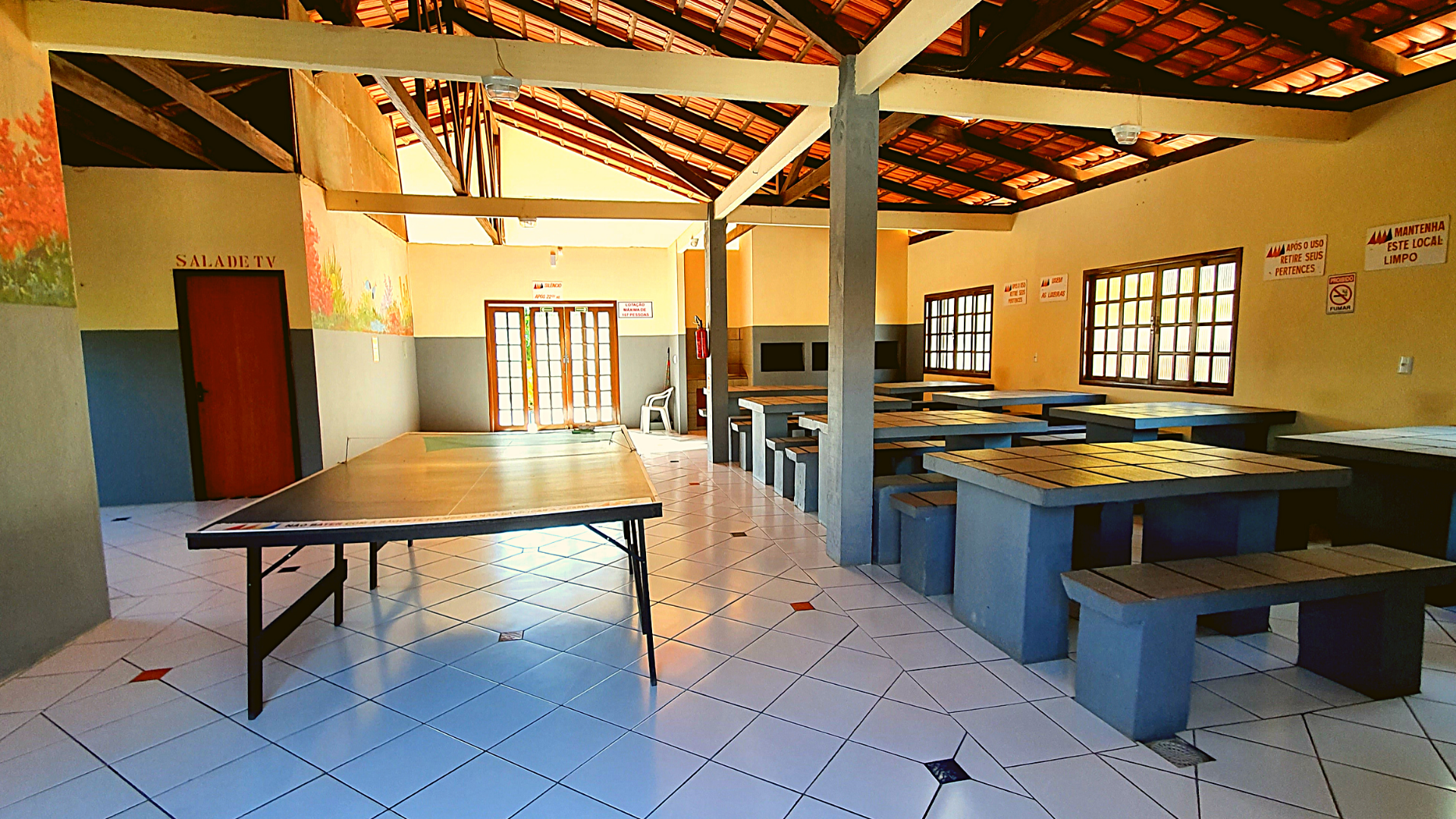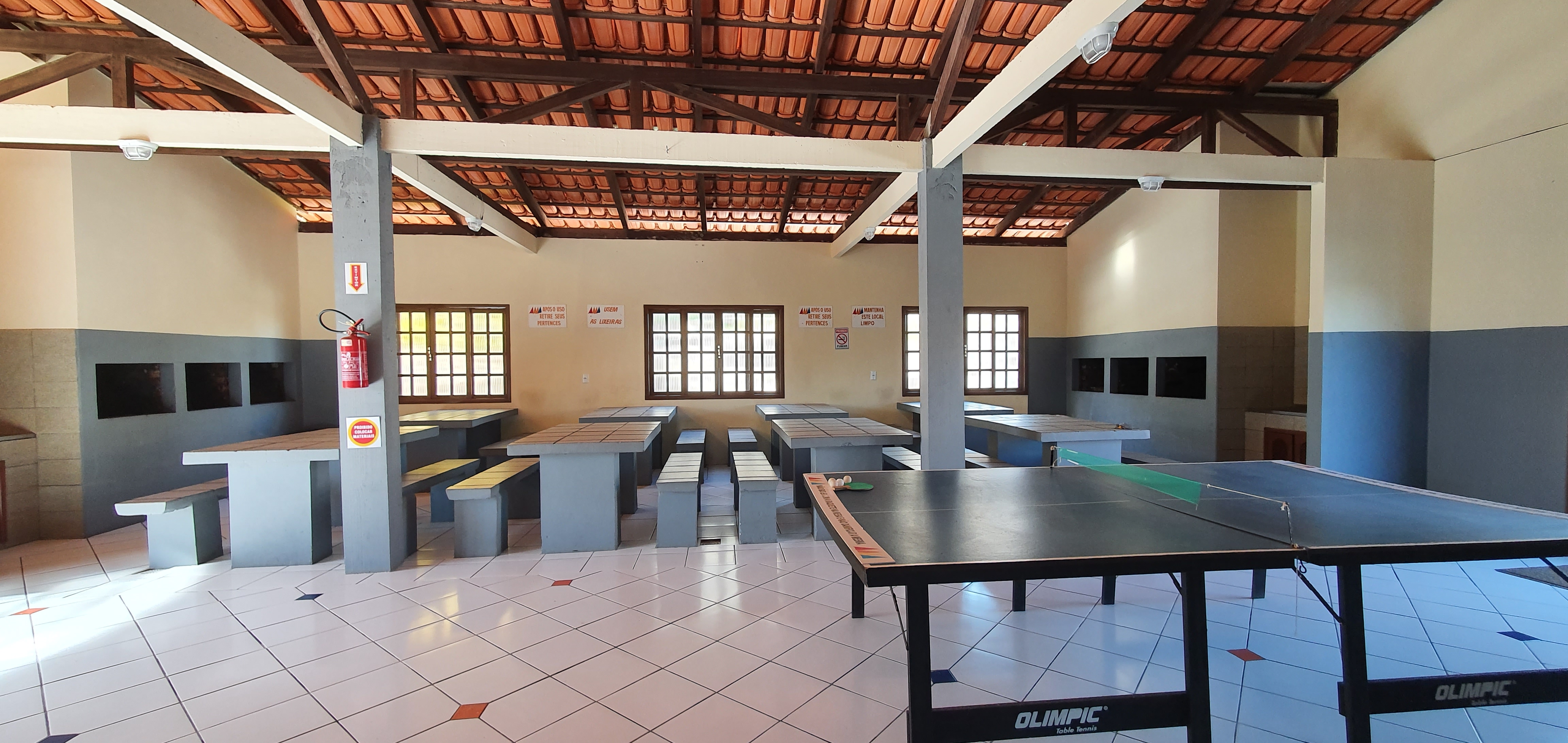 A large covered and community living room for meals and games is available to all guests, 24/7. There you can gather your group of friends, or the ones you made here. The barbecue area has tables, benches, grills, sinks for washing dishes, a TV room and a ping-pong table. A place reserved for fun even in the rainy hours or late at night.