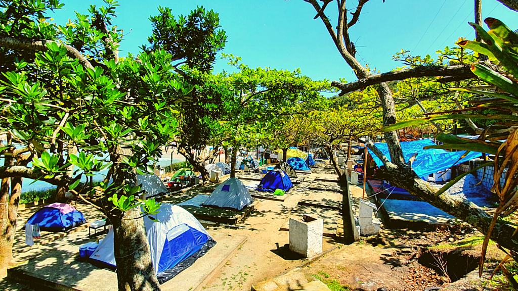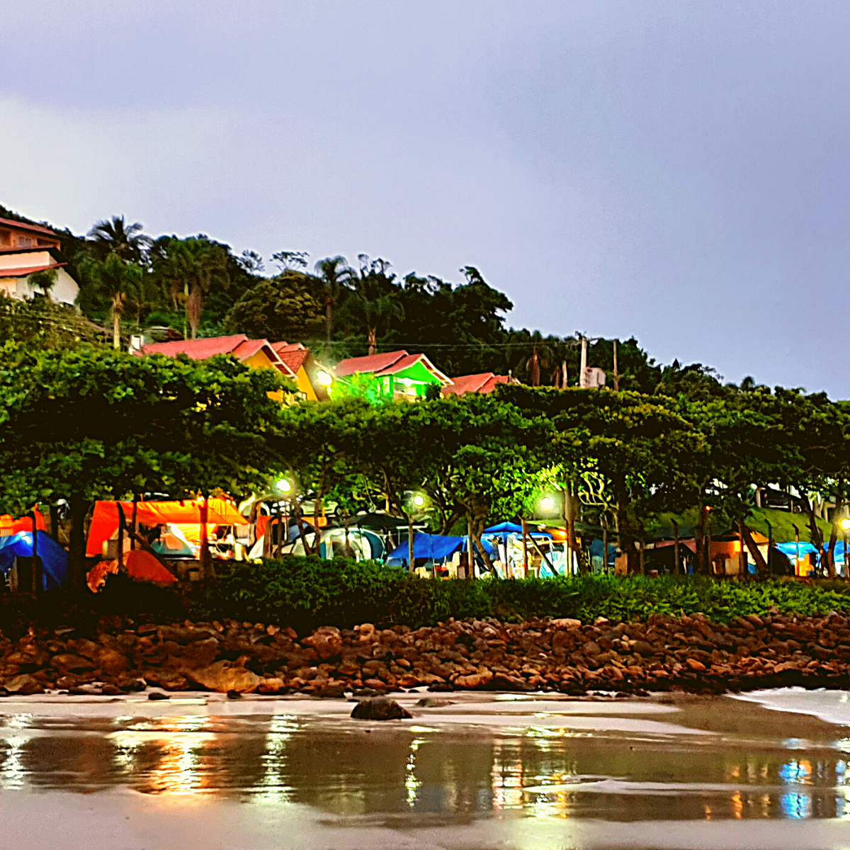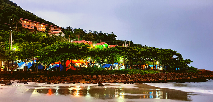 Surrounded by large trees our campsite is the most popular in Bombinhas. Part of the draw is its proximity to the ocean. Tents-only campground. No RVs and trailers are allowed.